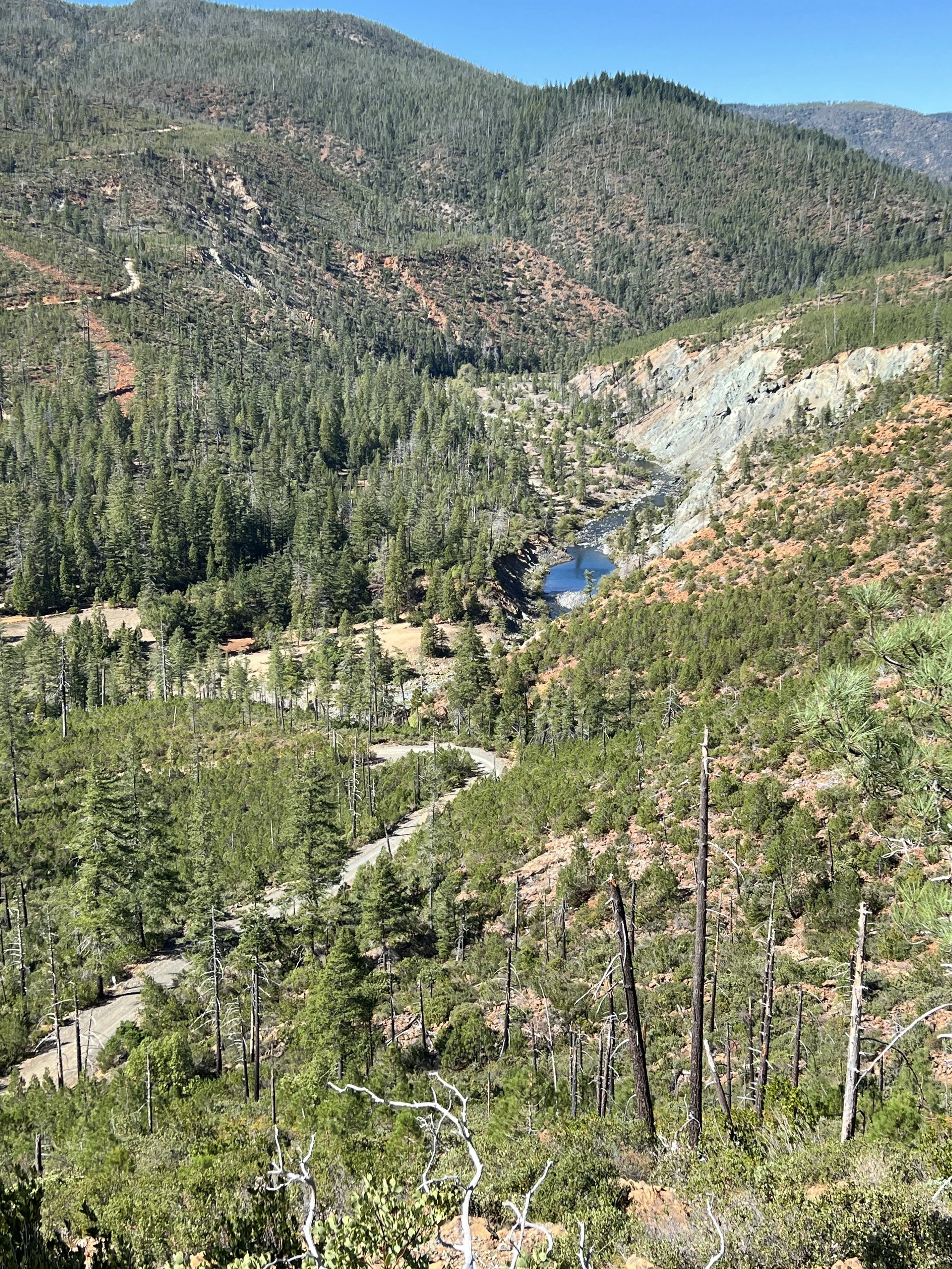 We drove east from the North Fork Smith River. In this photo, you can see a small sliver of the river and the popular boating put-in called Major Moore’s. Most visitors to this region are coming to raft and kayak the Class IV rapids of the North Fork Smith River, which is usually runnable from late October to early May. Photo credit: Mike Splain